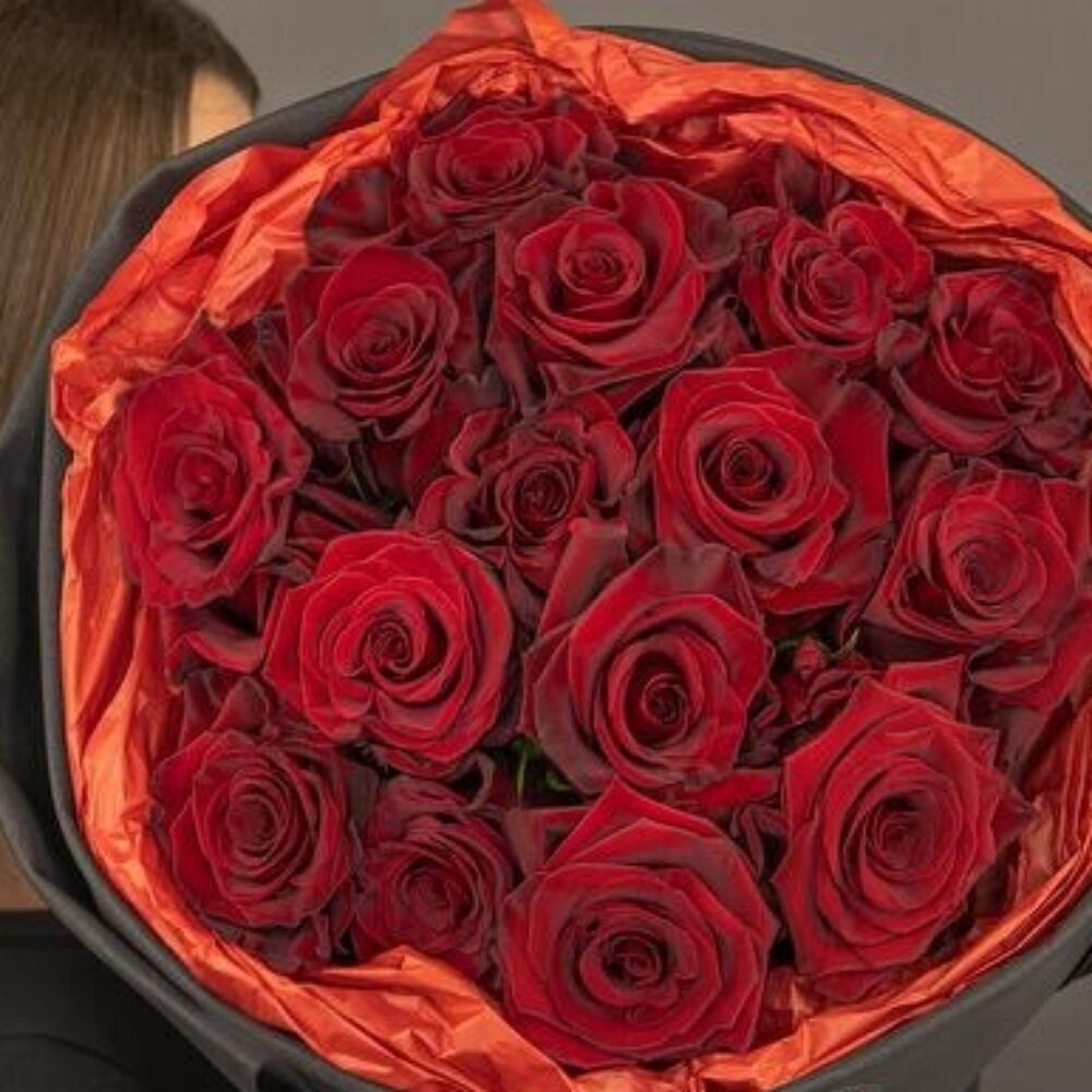 #.120 The shop’s signature bouquet of red Ecuadorian roses “Red in Black”